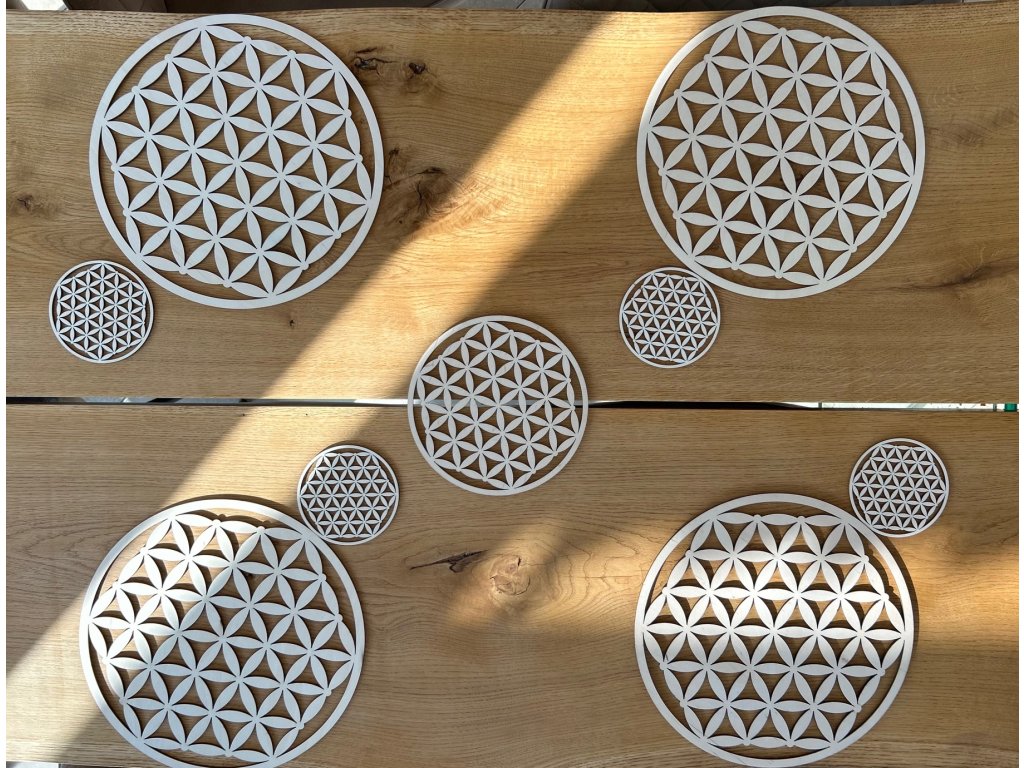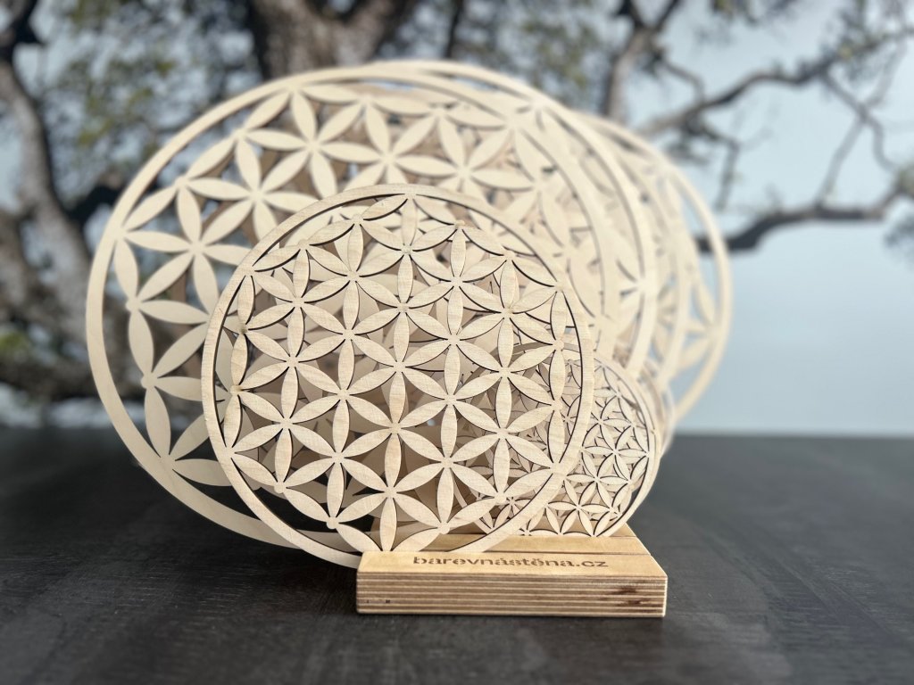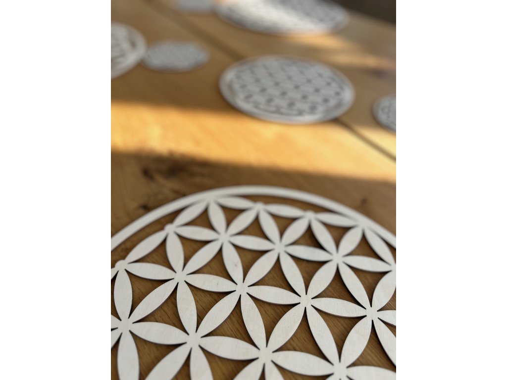 Tato velká sada dřevěného prostírání v vyřezávaným motivem Květu života vdechne slavnostní atmosféru každému společnému jídlu. Harmonické a funkční prostírání, které je zároveň přírodní dekorací.